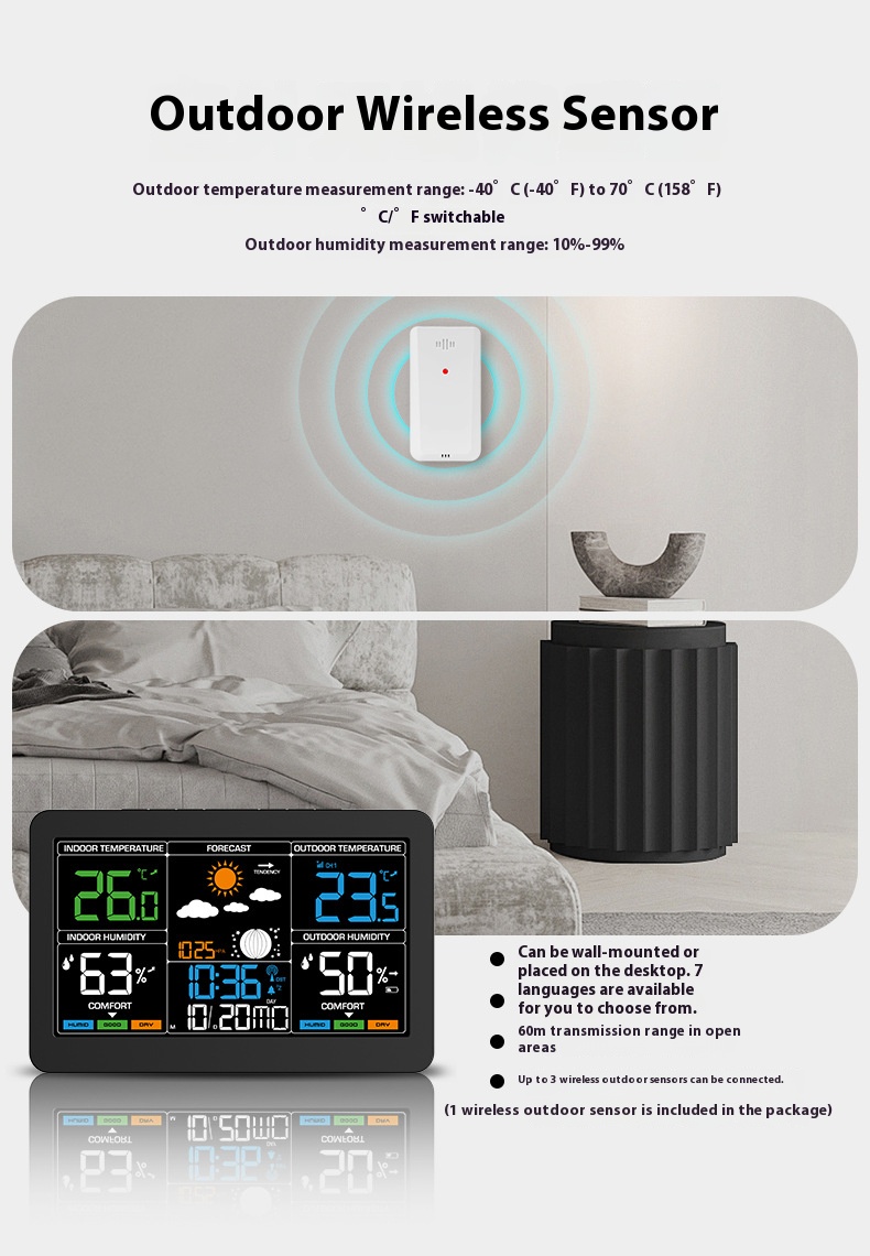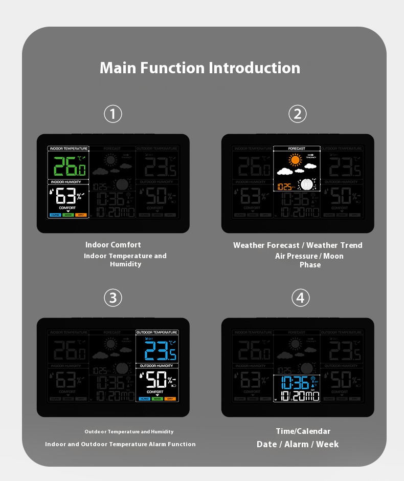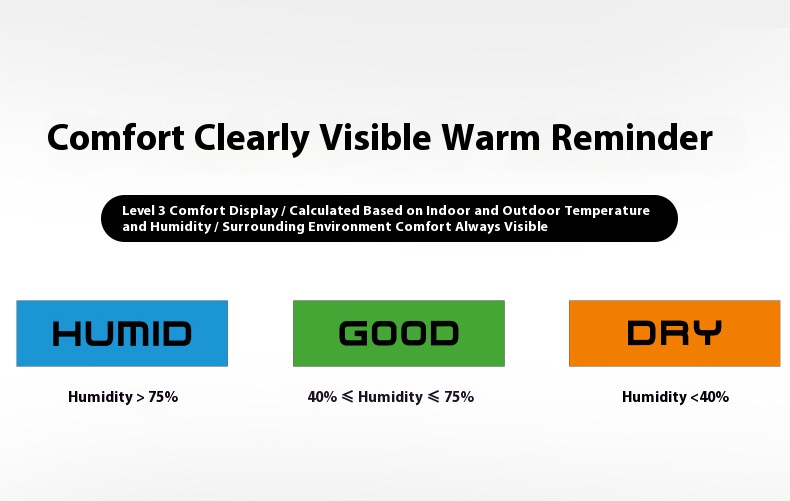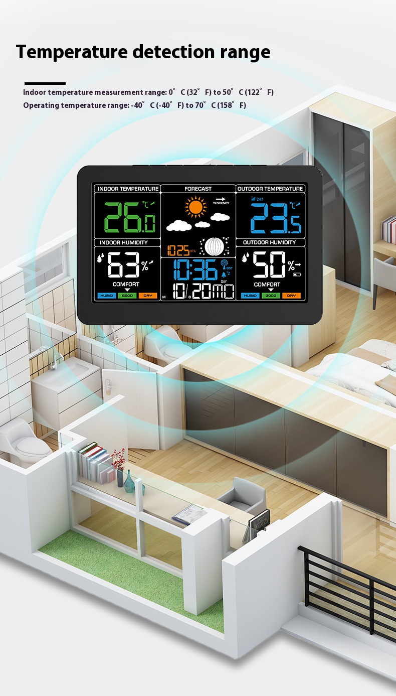 ►Indoor and outdoor humidity range: 10%-99%, humidity resolution: ±1%RH.