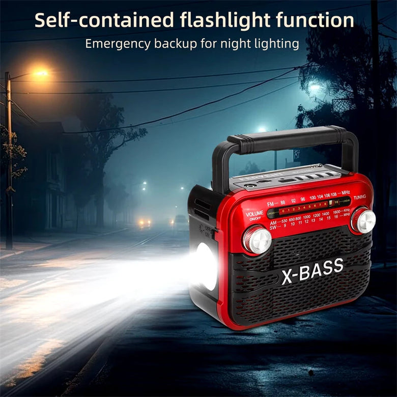 X-BASS Handheld Radio FM AM SW Radio Built-in Magnetic Speaker Support USB BT TF Headphone Music Player with Multi-band Household Flashlight Indoors Outdoors Use