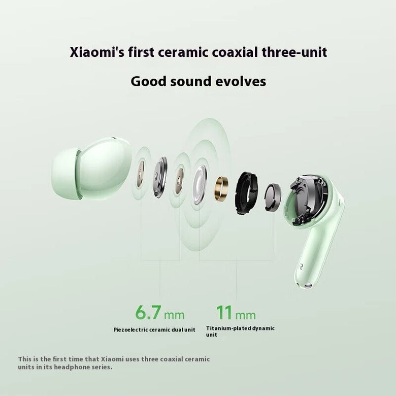3. Three Moving Coils: Xiaomi's first coaxial ceramic three-unit, 6.7mm piezoelectric ceramic dual unit, 11mm titanium-plated dynamic unit, clear treble with rich details, full midrange and powerful bass.