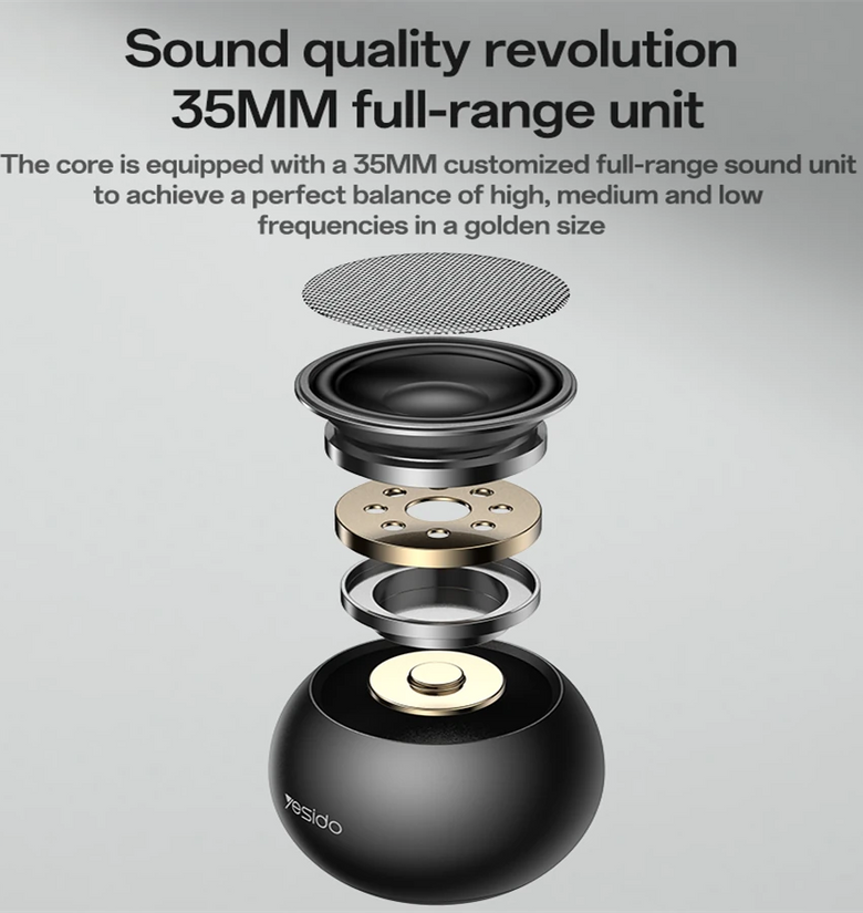 • Yesido YSW33 Wireless Bluetooth Speaker Small Steel for Cannons Speaker 35MM Speaker Full-Range Unit Bluetooth Speaker