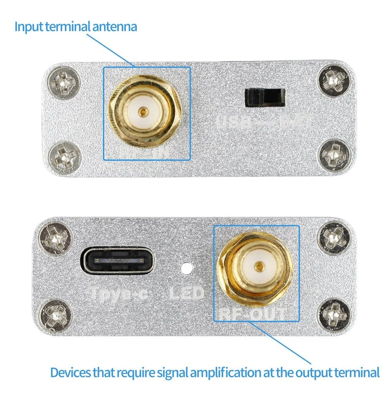③Please note that using more than 5V 1A power supply will cause damage to the HT004 LNA, which is not covered by the warranty!!!
