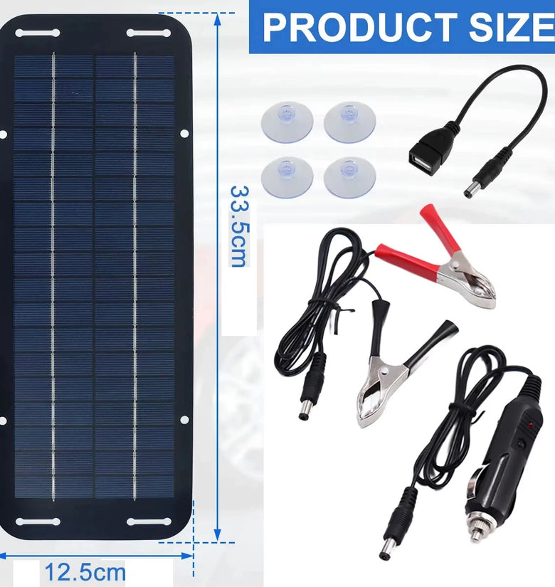 3. Portable and Lightweight Design:The 12V solar panel is designed for on-the-go use, featuring a lightweight and flexible kit for camping and hiking.