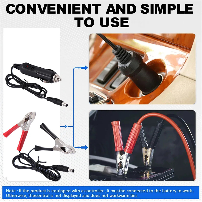 Simply plug this solar charger into your vehicle's 12V light socket and position the panel where it will receive the most sunlight. Alternatively, you can use the included alligator clips to connect directly to the battery. (You can also mount this solar panel on your windshield using two suction cups or secure it to your visor using the straps.)