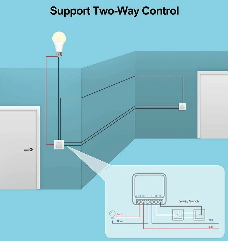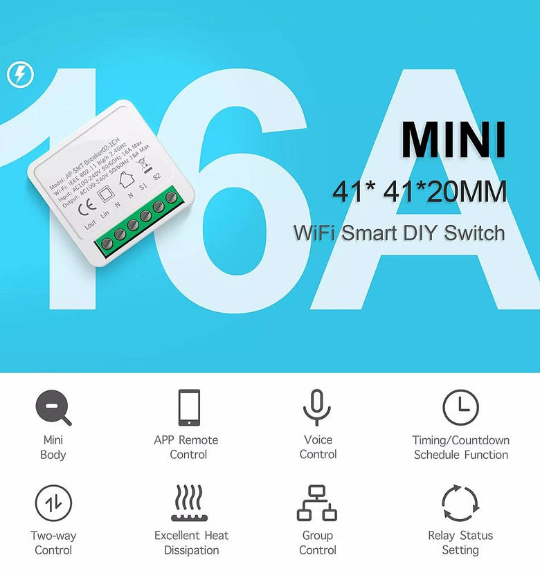 • 16A Mini Smart Wifi DIY Switch Support 2 Way Control Smart Home Automation Module Work with Alexa Google Home Smart Life App