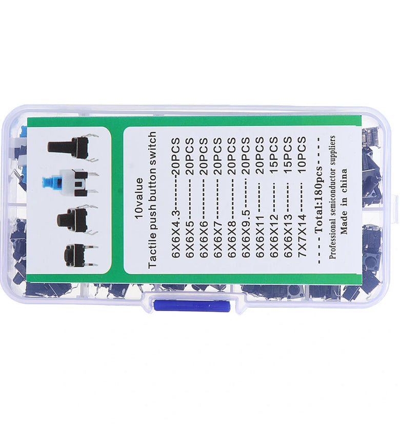 • 180Pcs 10 Values Tactile Push Button Switch Mini Momentary Tact Assortment Kit DIY