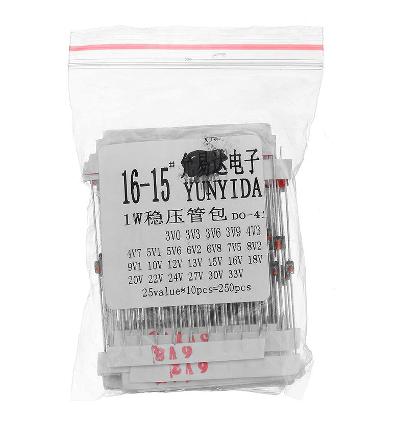 250 x 25 Values 1W Zener Diode Assorted Kit