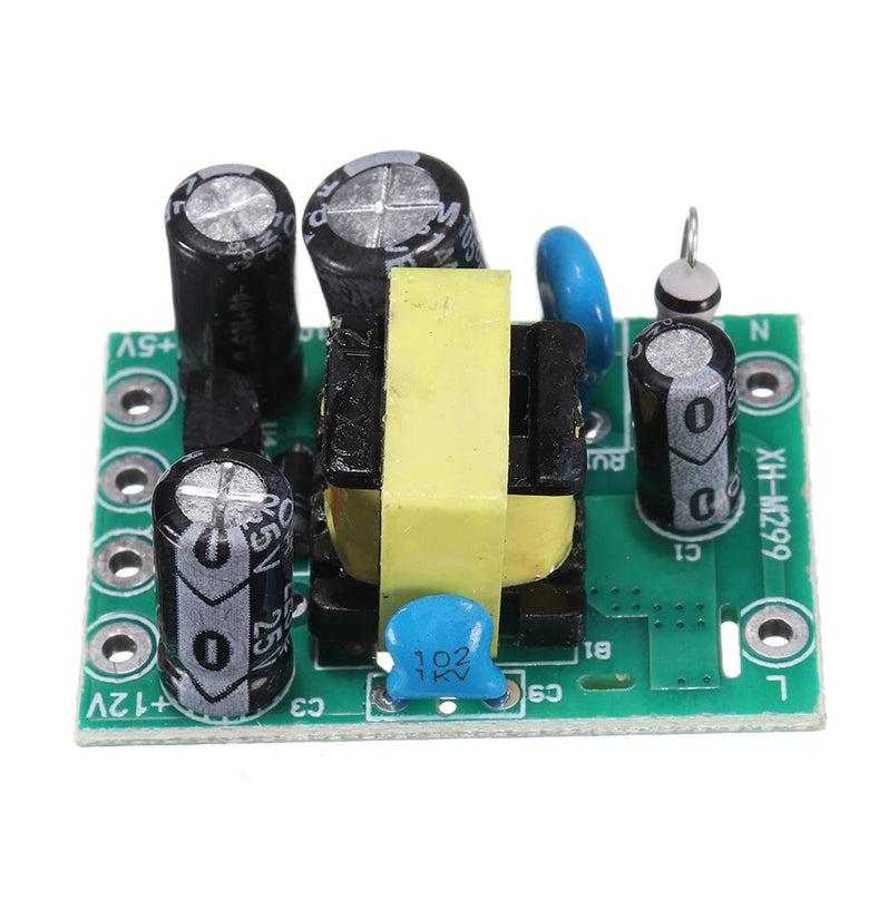 Dual outputs, 5V and 12V, respectively, can be connected to the output voltage matching load.