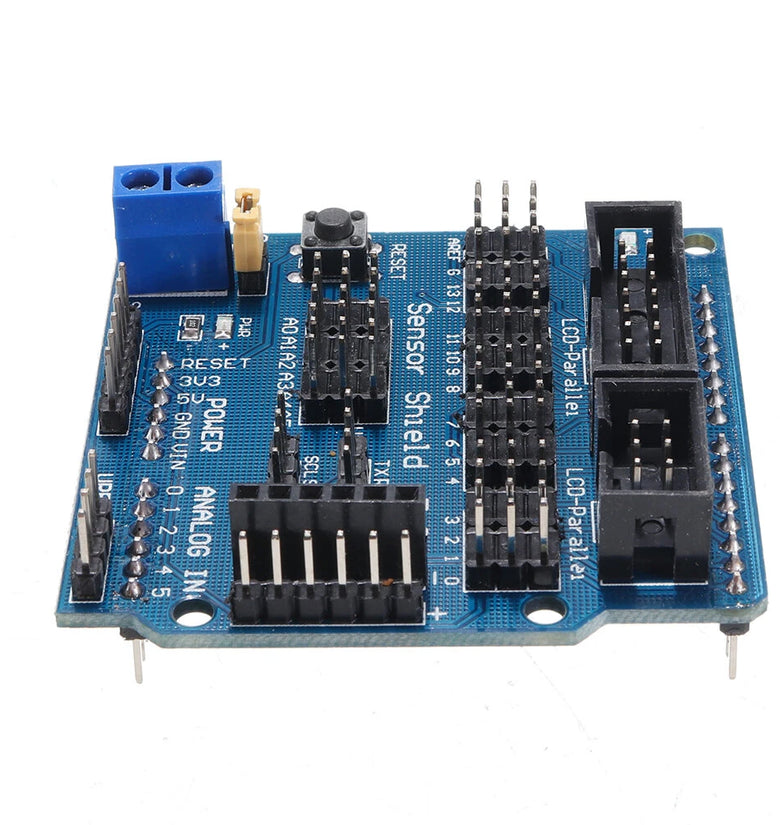 This Sensor Shield V5.0 sensor expansion board, the motherboard is not only extended out the Uno all digits and analog interface to servo line order form , but also add hoc IIC interface, servo controller interface, bluetooth module communication interface, SD card module communication interface, APC220 radio frequency module communication interface, ultrasonic sensor interface, 12864 LCD serial and parallel interfaces, independent expansion will be more easy and convenient.