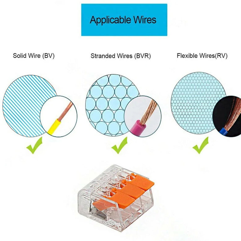 Safety advice: We have to use a secure wire connector to avoid unsafe electrical that may cause a fire. It can completely help you eliminate the electrical connection security risks. It is safe and transparent visible, and easy to use, just plug directly.