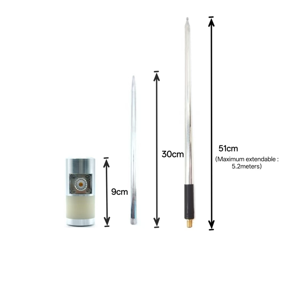 • 5.6m Telescopic Antenna 14-50MHz 100W PEP High Performance Portable Outdoor Communication Stainless Steel M10 Thread Aluminum Base