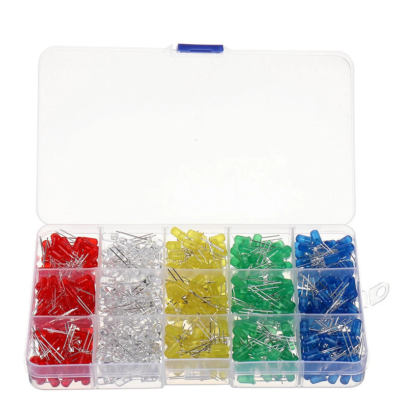 500pcs 5MM LED Diode Kit Mixed Color Red Green Yellow Blue White + BOX