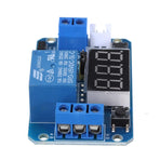 - Can be triggered by an external signal. When power is on, the power LED lights up, but the module does not work. When there is an external trigger (low power or high level trigger) (such as the button is grounded instantaneously), the relay is triggered, the module starts to work and countdown delay, when the delay time After the relay is disconnected