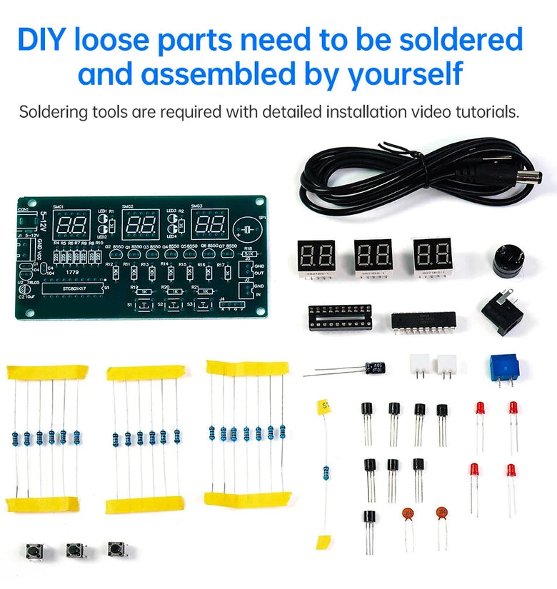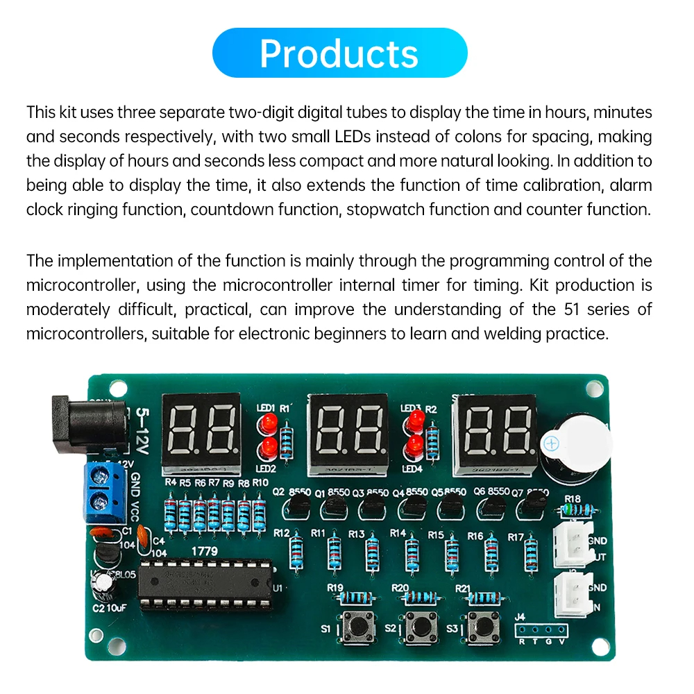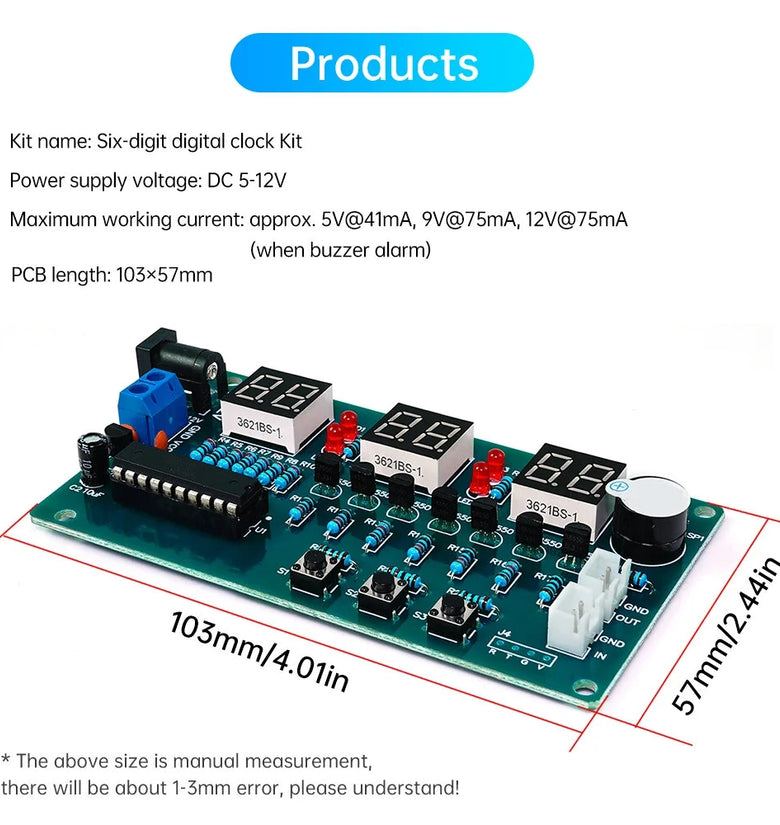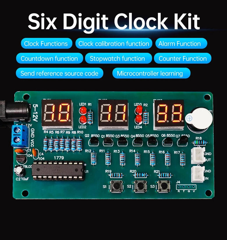 6-bit Digital Clock DIY Kit 51 Microcontroller Electronic Clock 6 bit Tube LED Display Module Suite Parts and Components DC5-12V
