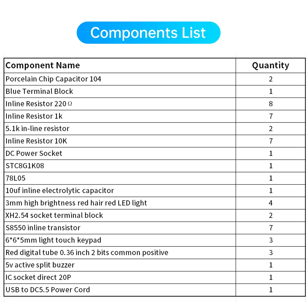 4. Improve skills: Enhance understanding of 51 series microcontrollers, cultivate programming and hands-on abilities.