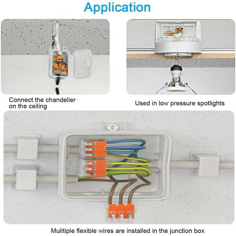 Safety advice: We have to use a secure wire connector to avoid unsafe electrical that may cause a fire. It can completely help you eliminate the electrical connection security risks. It is safe and transparent visible, and easy to use, just plug directly.