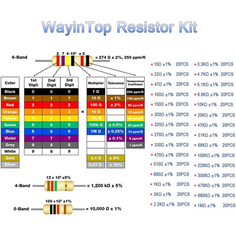 Product Name: 800pcs 300 Value Metal Film Resistor Kit with 5MM LED Light Kit