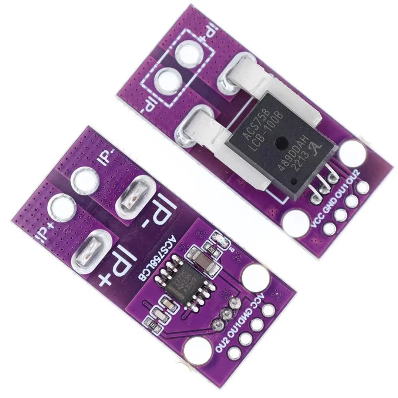 1. High-Precision Sensing: The CJMCU-758 uses the ACS758-LCB current sensor to deliver accurate current measurements. The sensor integrates a precision linear Hall sensor circuit that translates the magnetic field generated by the current-carrying copper path into a proportional voltage. This setup ensures high accuracy, making it perfect for applications requiring reliable current sensing.