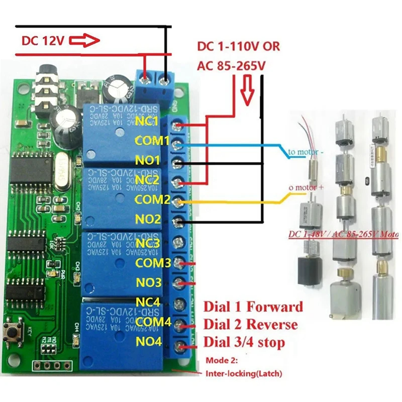 4. Eight modes of operation: Non-locking (Momentary ), self-locking (Toggle), inter-locking(Latch), 5/20/60/120/250-second delay.