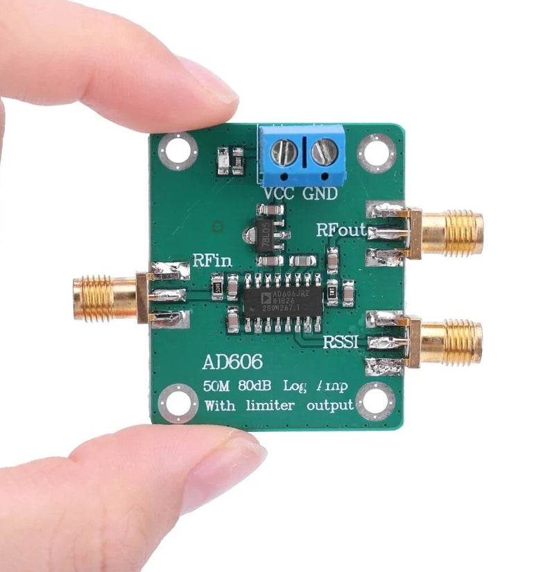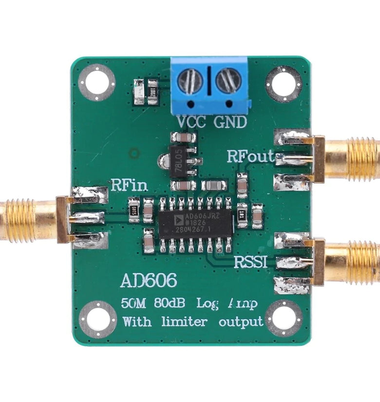 Specification:Model Number: AD606 Log Amp ModuleDimensions: 52 X 40 X 12mm/2.0 x 1.6 x 0.5inchColor: GreenLogarithmic amplifier performance:Dynamic range : -75 dBm to +5 dBmInput noise: ≤ 1.5nV /HzOperating frequency: available for > 50 MHz 37.5 mV/dB voltage outputOn-chip low-pass output filterLimiter performance: 61 dB output flatness in the 80 dB range, in the 80 dB rangePhase stability: 638 phase stability at 10.7 MHz, adjustable output amplitude Low power +5 V single power supply65 mW typical power consumptionCMOS compatible power consumption down to 325 mW (typical)<5 ms enable/disable time