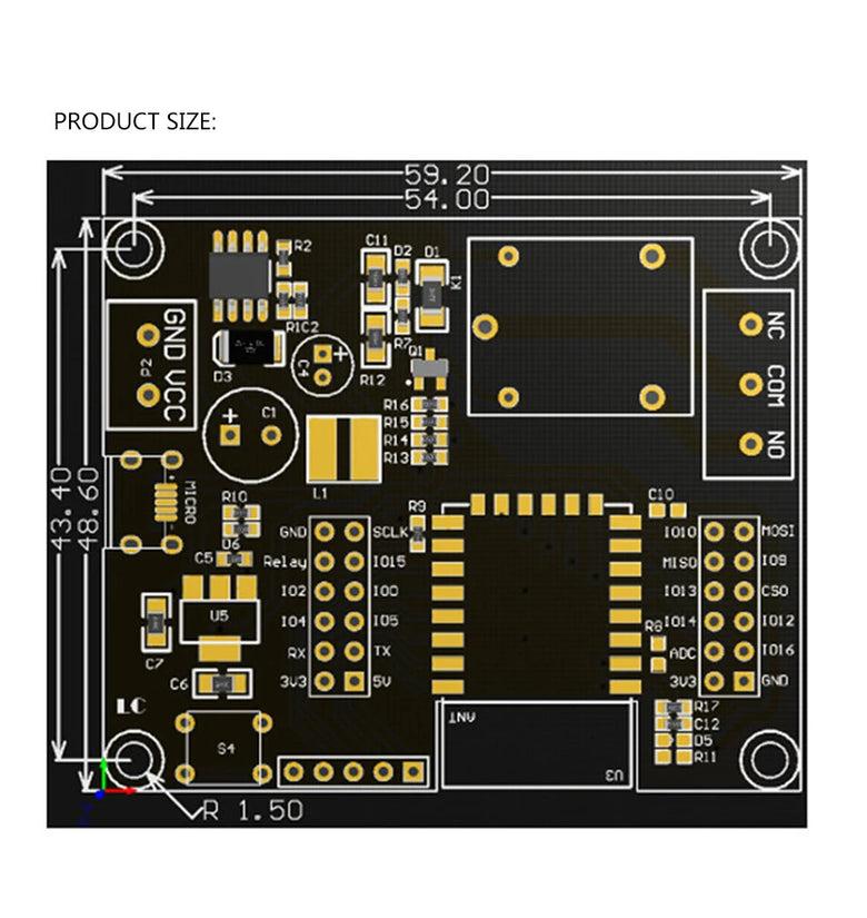 | 2 | Relay | Relay drive port, IO5 is used as the default drive. If you want to use other I/O to drive the relay, you can remove R14 and then connect the I/O driving the relay to this Relay pin. | 14 | MISO | Slave output Master input |