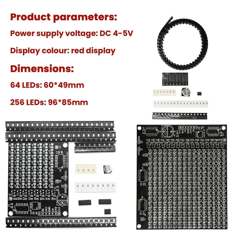 4. Compact Display Options: Choose between two configurations—64 LEDs or 256 LEDs—to display clear text and intricate patterns with row-column scanning.