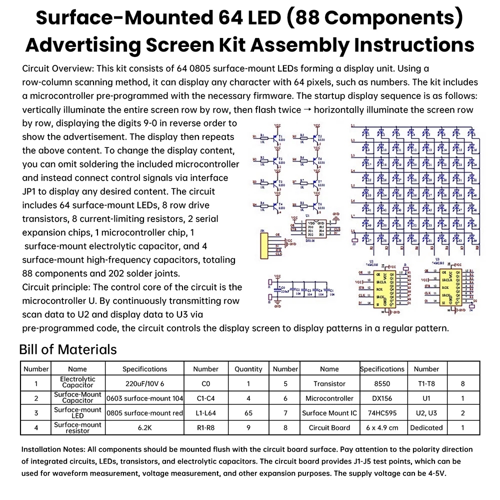 5. Comprehensive DIY Components: Comes with complete surface-mount component sets, enabling users to improve their soldering skills and deepen their understanding of electronic assembly.