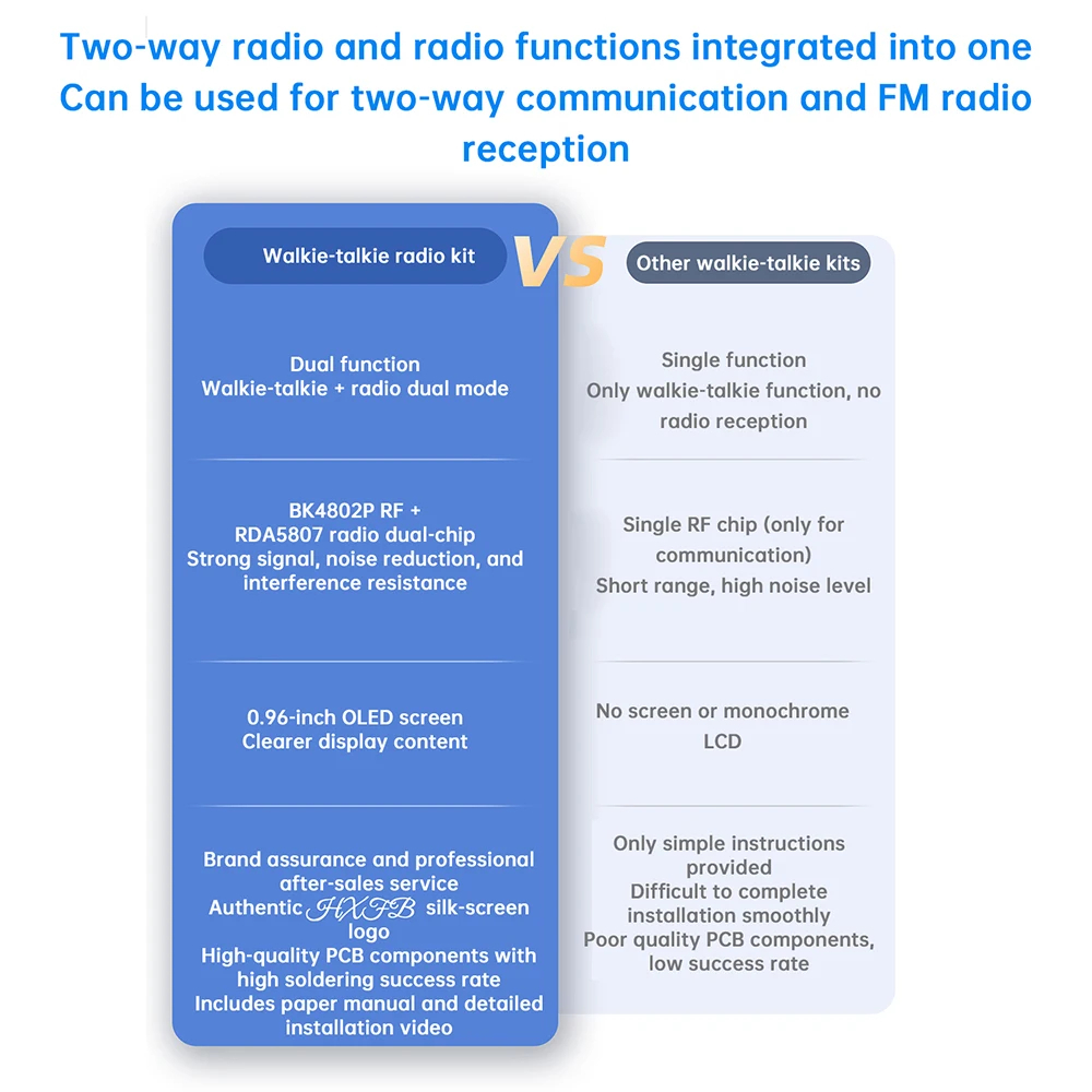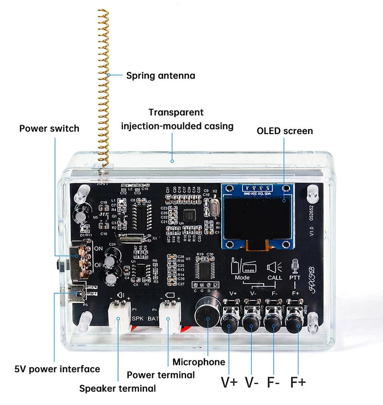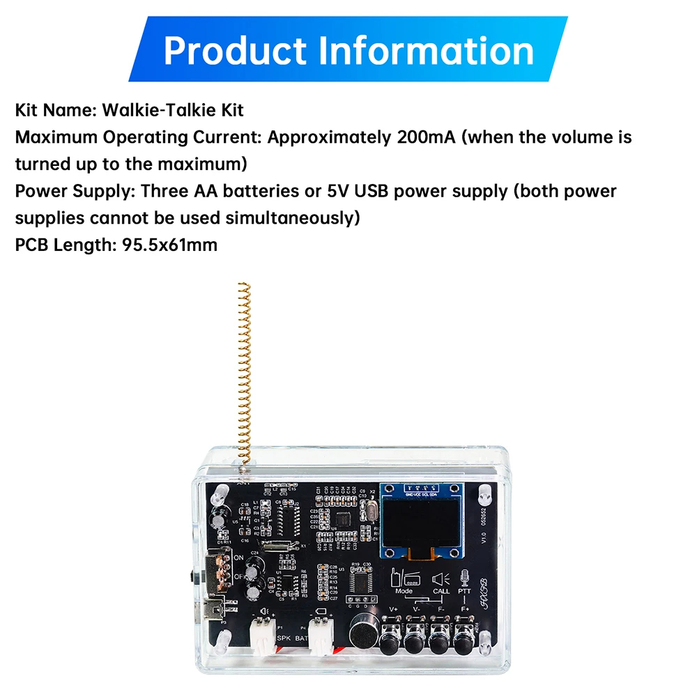 • DIY Smart Intercom Radio Kit Adjustable Frequency 409.85MHz 87-108MHz OLED Display FM Walkie-Talkie Communication and Radio Listening