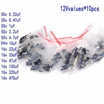 1.Wide Capacitance Range: This kit includes 12 different capacitance values ranging from 0.22μF to 470μF, providing a versatile selection to meet various project requirements. It's ideal for both professional engineers and hobbyists.