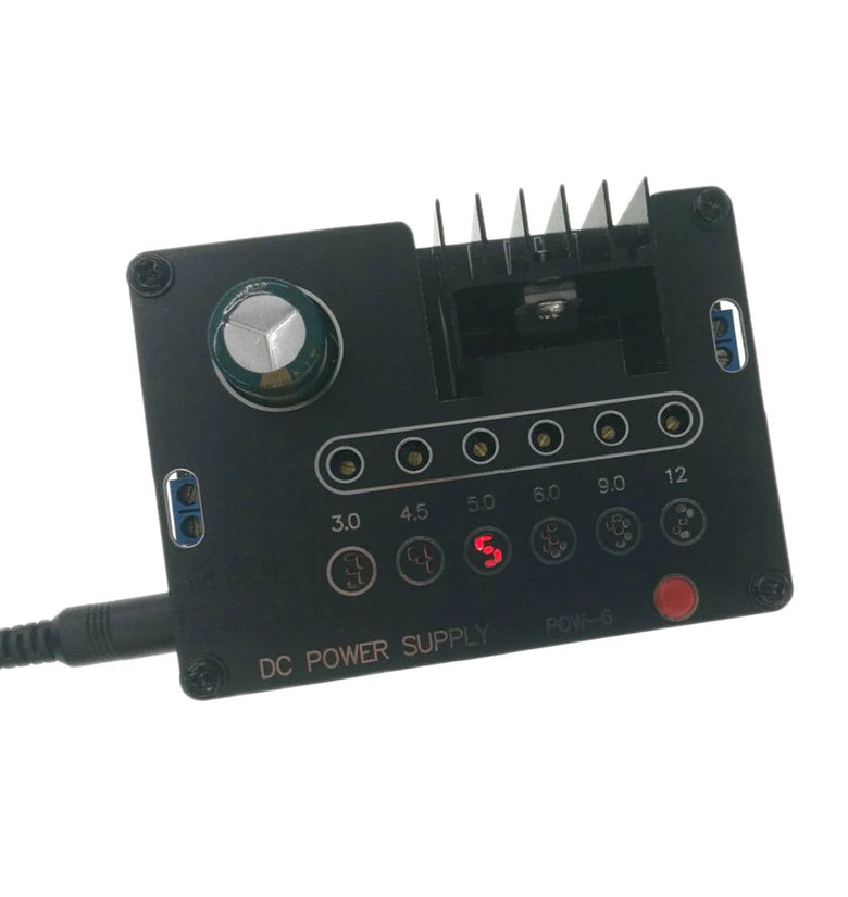 Input voltage: DC18V, AC15VOutput voltage: 3V, 4.5V, 5V, 6V, 9V, 12VOutput current: Max 1AVoltage indication mode: LED indicationSize: 93*67*41mmWeight: 95g (single kit), 180g (including US plug power supply)