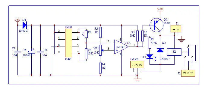 Relay passive output and triode-driven active output, JMP2 jumper cap set whether to let the relay work, if not use the relay passive output function, you can set the relay is not working to reduce circuit power consumption, jumper cap in 2-3 position allows the relay to work, jumper cap in 1-2 position to prohibit the relay work.