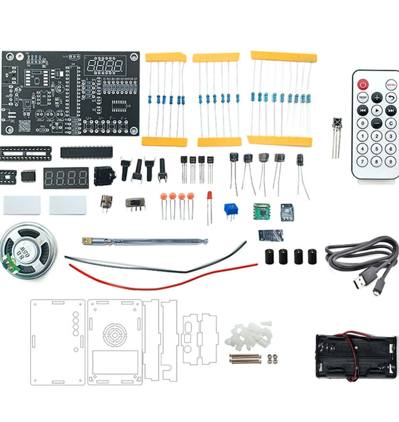 • FM Radio DIY Kit Multipurpose FM Radio Tuner LED Display Remote Control 5V DC 3V Battery One-Touch Auto-Search Signal Strength Indicator