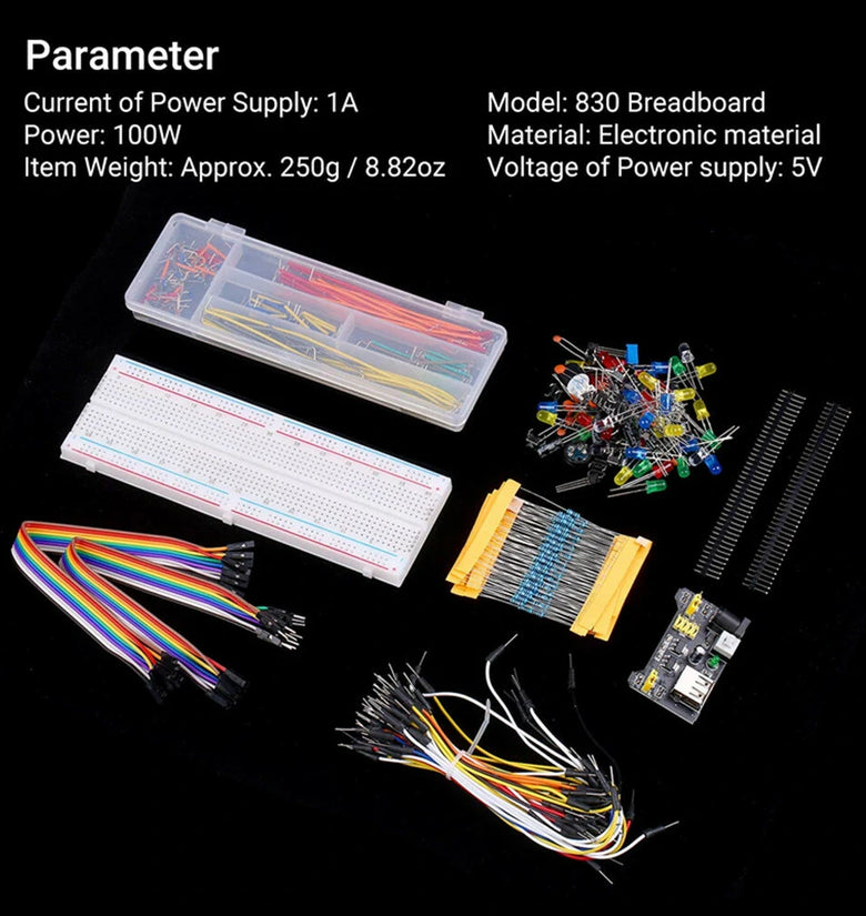 • Full DIY Electronic Kit 830 Breadboard Jumper Wire Power Supply Capacitor LED Light ArduinoUNO Nano Mega Basic Starter Kit