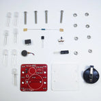 Seven 5mm Milky LED displayAll DIP Components to BuildRed PCBSmall Vibration Motor to create the vibrating effectStandby mode will show the breathing led effectUsing 3mm Acrylic to combine the cube shape6v Power Supply(use two CR2032 Battery, not included)Different color option: red, green, blue, white, yellowDimensions: 40mm x 40mm x 25mmAssemble manual: click here!