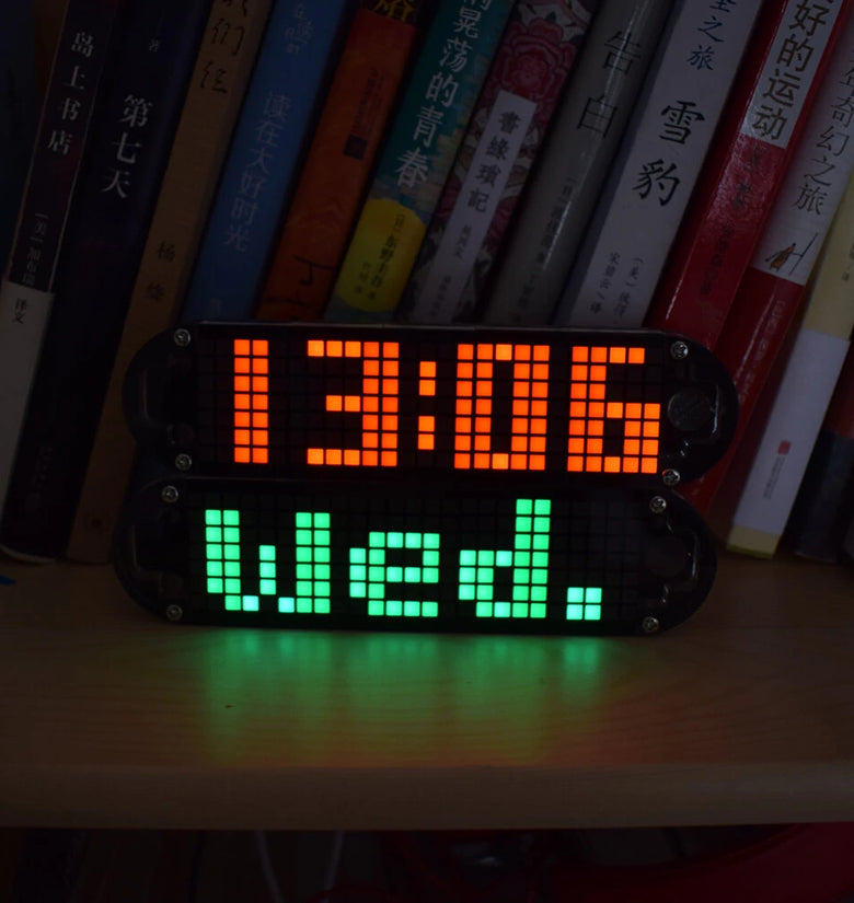 Square LED dot matrix module display time, temperature, date, week and other information;