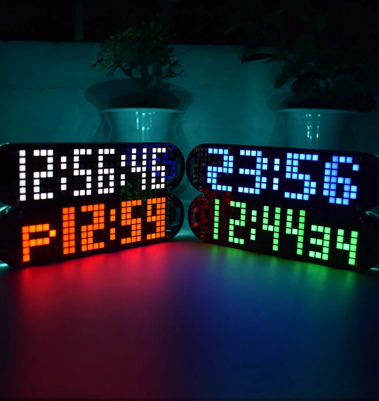This is a multi-functional DIY clock kit, built-in 15 menu settings, you can set a variety of different functions through touch buttons. For example,the brightness can be automatically adjusted according to the environment, you can wake up the clock by voice, but also can be set according to different preferences Show time-division(Hour:Minute:Second) mode or hour-by-minute(Hour:Minute) mode, each also added a variety of animation effects, as well as countdown, backlight effects, birthday reminders, also added 16 common holiday reminder. Increased practicality, better functionality, and black translucent acrylic make the clock look more concise.