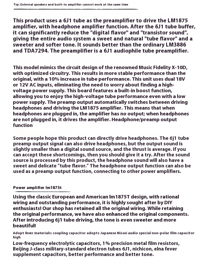 Equipped with 6J1 vacuum tubes, this amplifier delivers clear, natural audio output, ensuring a premium listening experience for audiophiles.