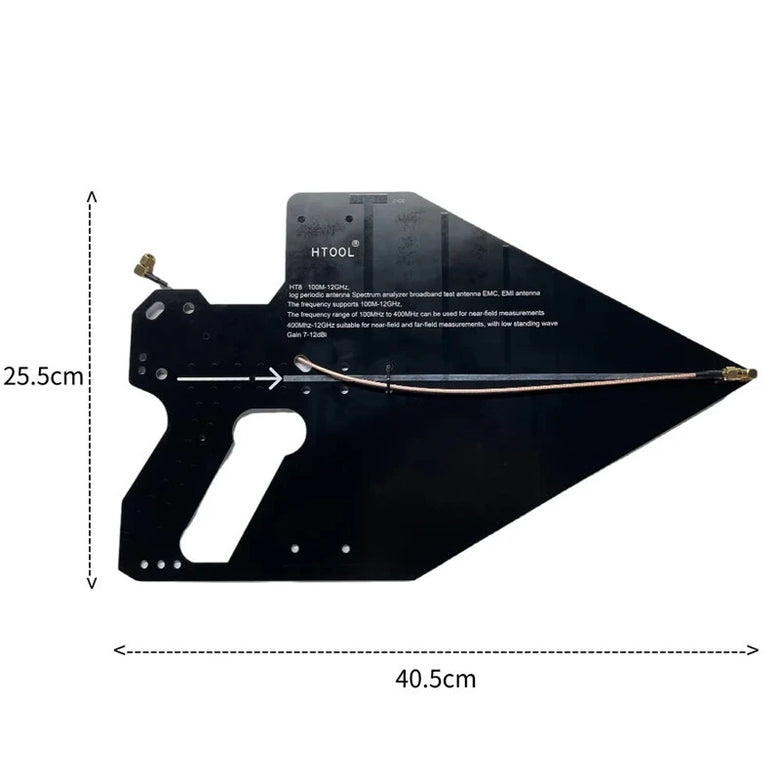 5. Multi-frequency band support: The logarithmic periodic antenna is able to cover a wide bandwidth range of 0.1-12GHz, which enables it to adapt to the signal measurement needs of different frequency bands.