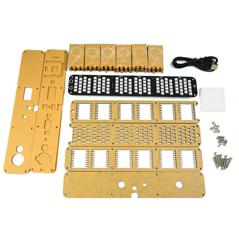 • HU-071 DIY RGB LED Clock Kit Digital Alarm Multi-Color Display Touch Controls Music Spectrum Timer Backup Battery High Clarity Acrylic Customizable Colors DC 5V