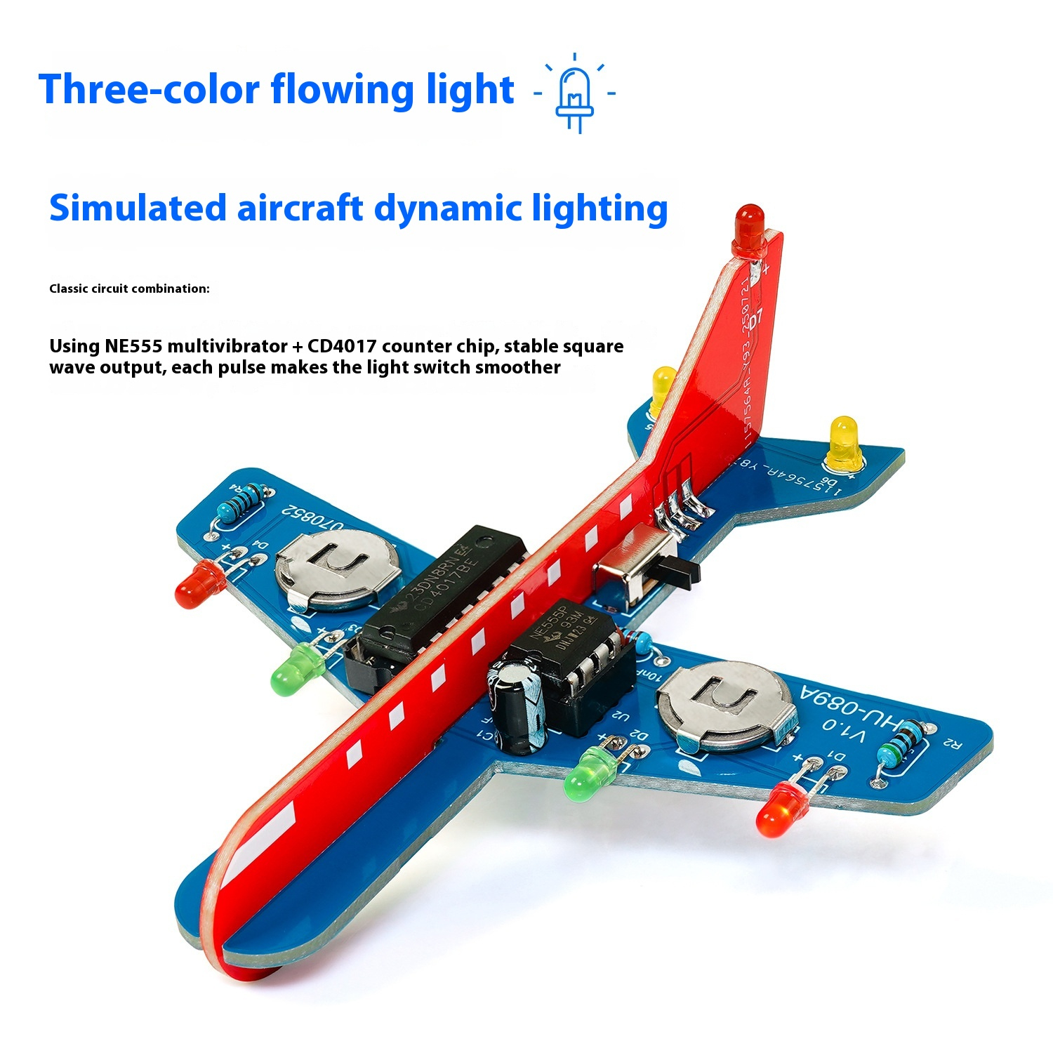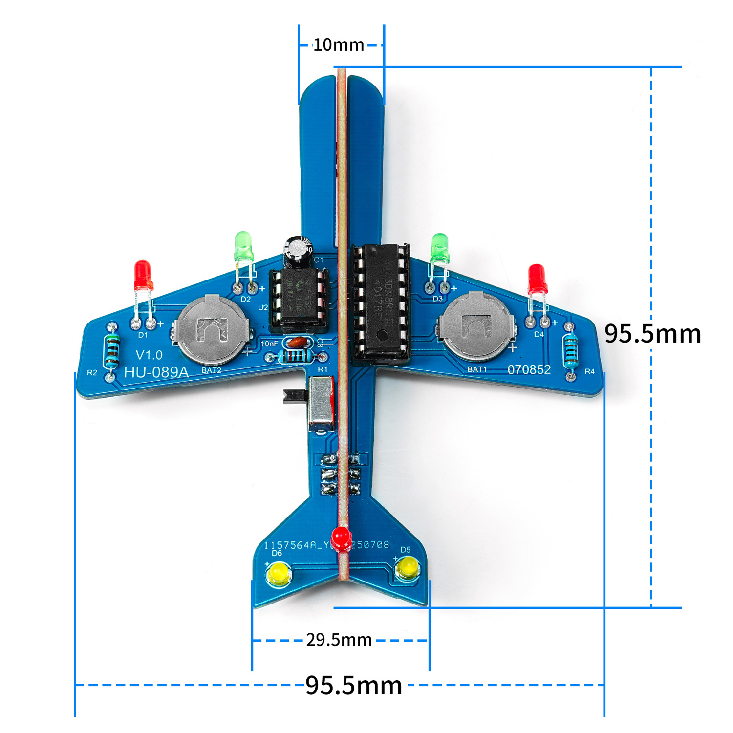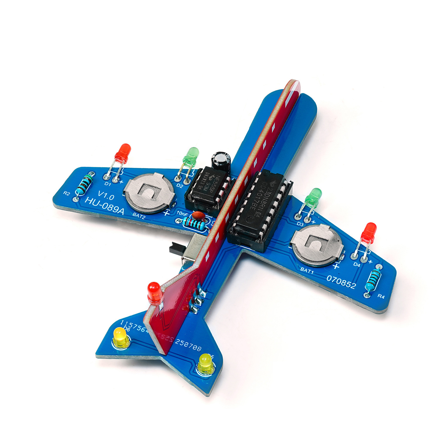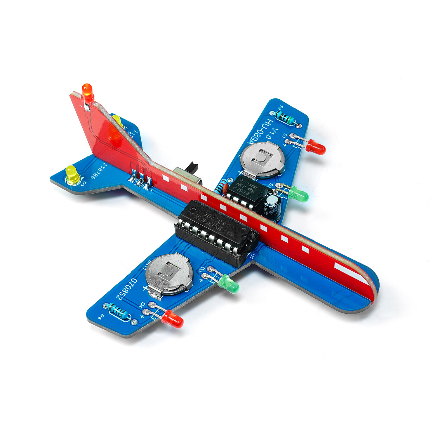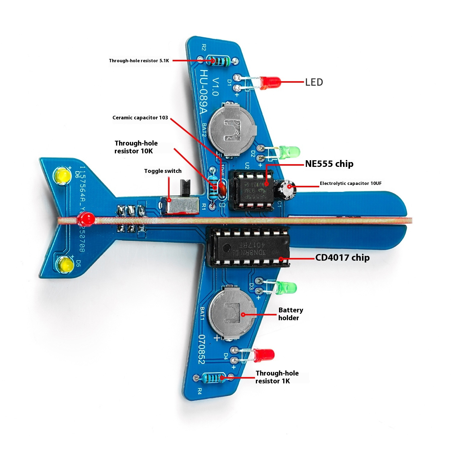 Equipped with NE555 multi-vibrator and CD4017 counter IC, it ensures stable flow signal output, creating a smooth LED animation resembling airplane lights in motion.