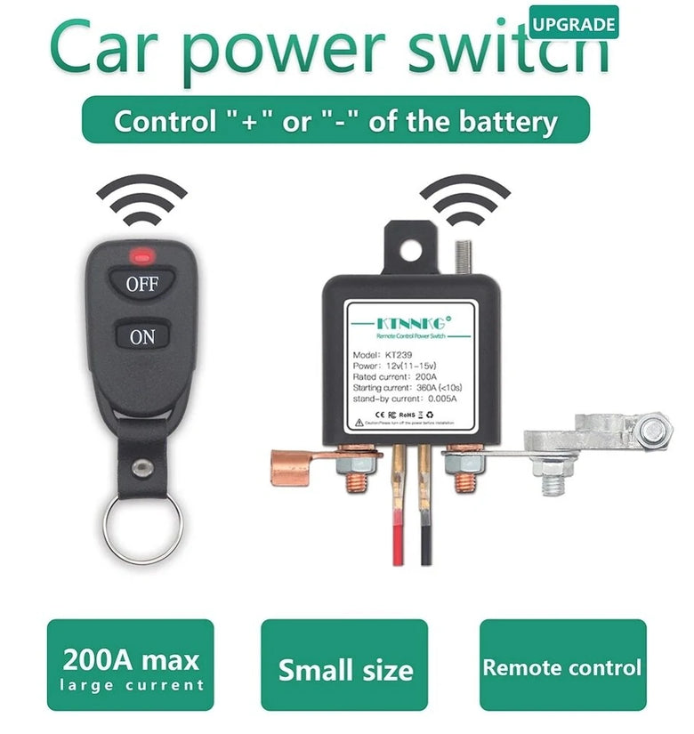• KTNNKG KT239 12V 200A Car Motorcycle Battery Switches Wireless Remote Control Battery Disconnect Cut Off Isolator
