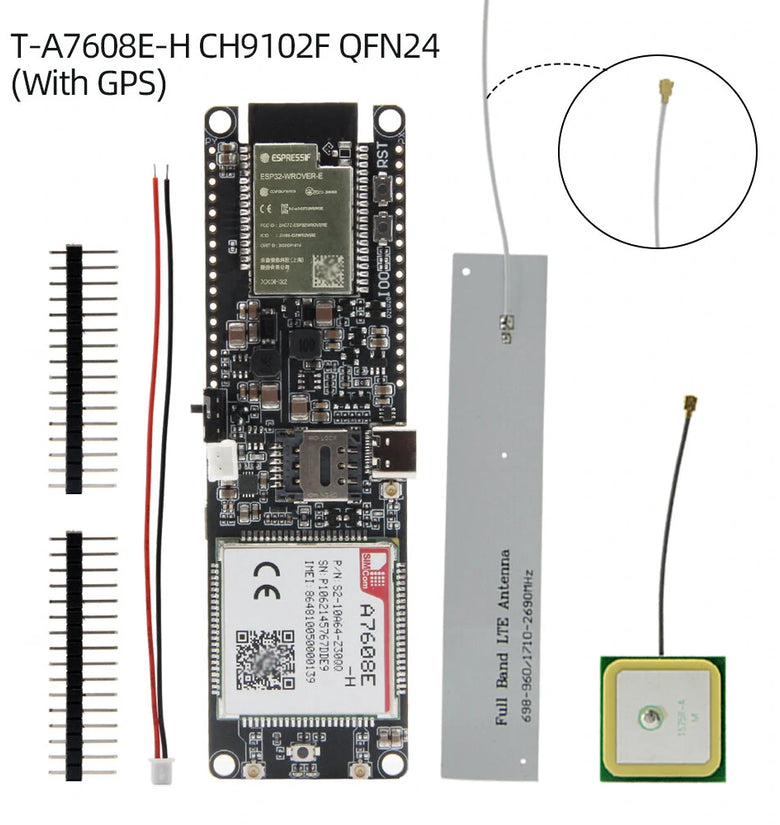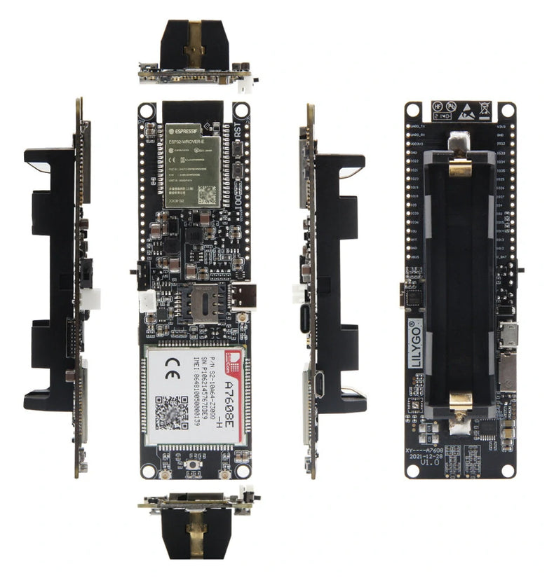 Both T-A7608SA-H and T-A7608E-H are equipped with ESP32 chip, which can realize WIFI and Bluetooth functions, and are equipped with SIM card slot and TF card slot.