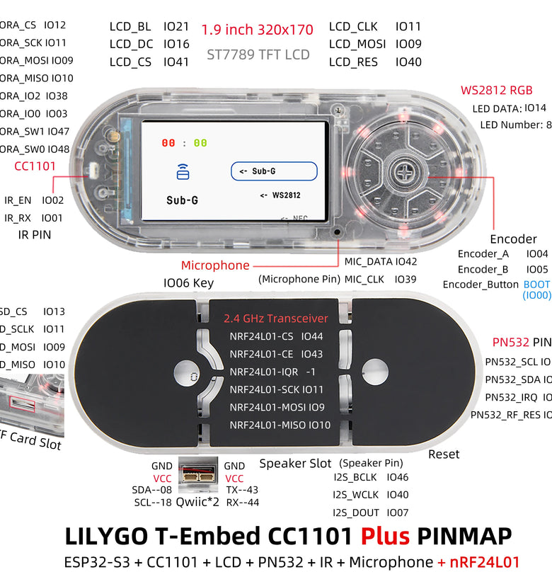 Featuring a vibrant 1.9-inch ST7789V IPS TFT display with high resolution for clear visuals, perfect for user interface applications and information display.