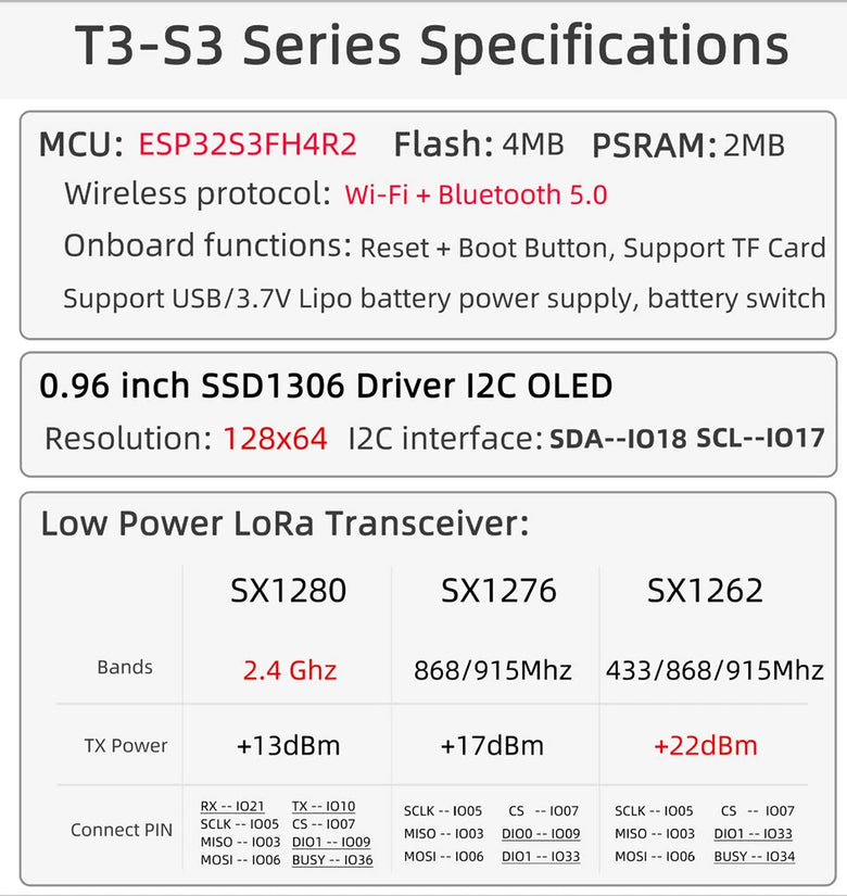 SX1262: 433/868/915MHz, TX Power +22dBm