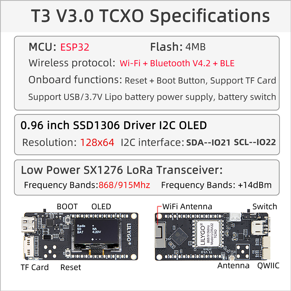 4. Advanced LoRa Module: Utilizes the SX1276 chip for reliable long-range communication capabilities across 868/915MHz bands, making it ideal for IoT projects requiring extended coverage.