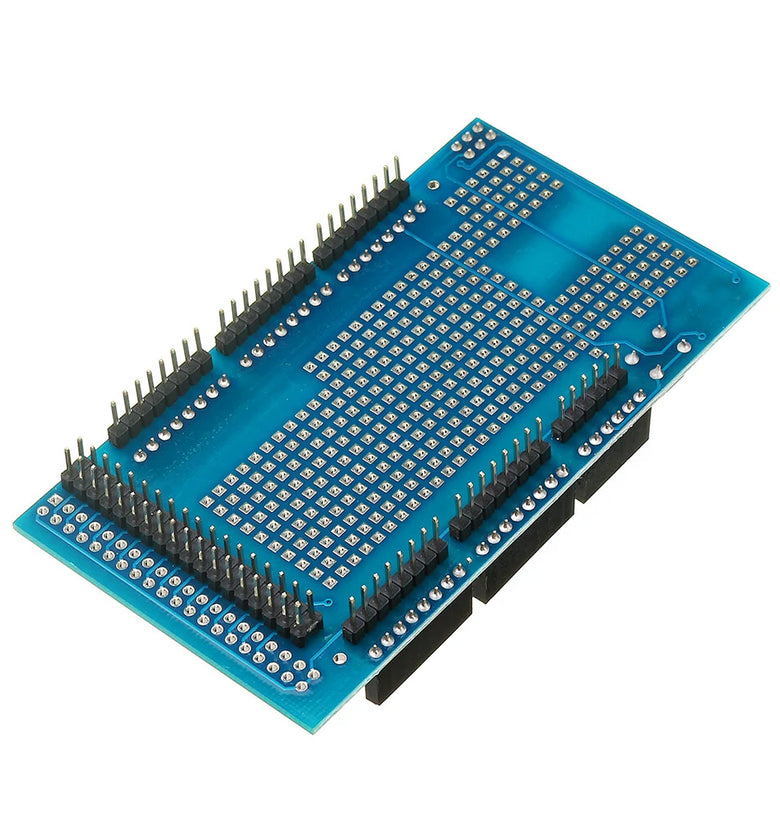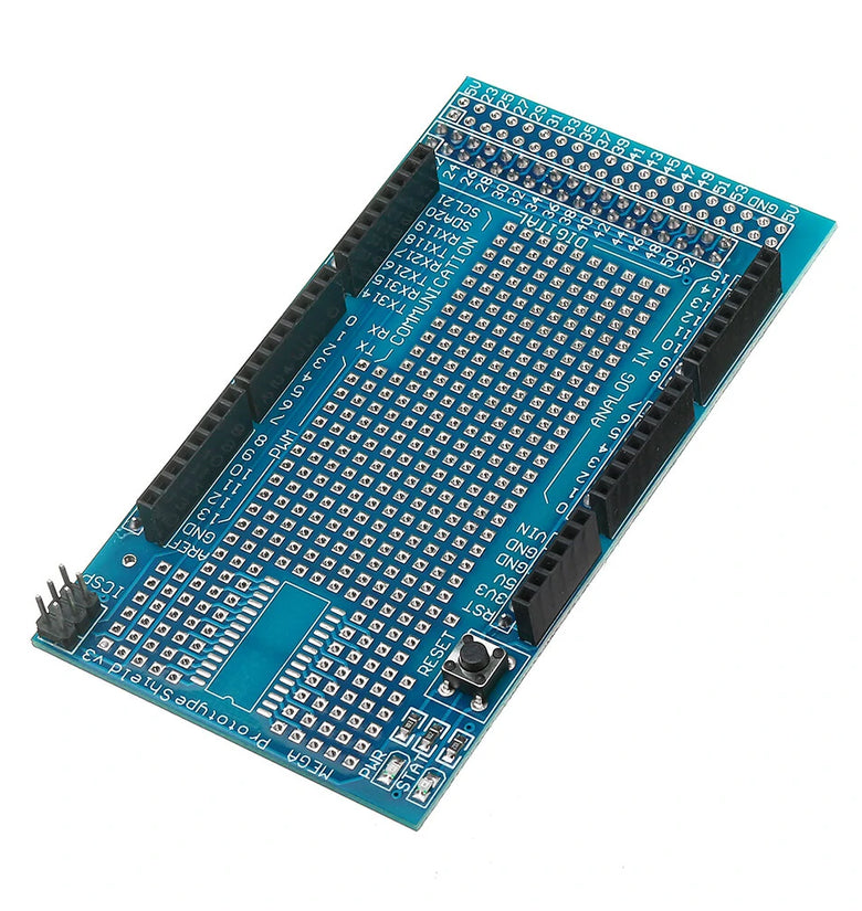 The Mega2560 1280 Shield V3 makes it easy for you to design custom circuits. You can solder parts to the prototyping area to create your project, or use it with a small solderless breadboard to quickly test circuit ideas without having to solder. It's got extra connections for all of the I/O pins, and it's got space to mount through-hole and surface mount integrated circuits. It's a convenient way to make your custom circuit and into a single module.