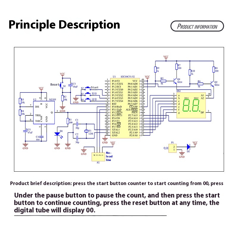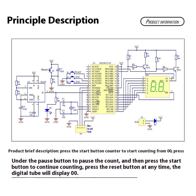 • Microcontroller Counter Kit STC90C52 NE555 Timer LED Display 5V-6V DIY Electronics Kit Precision Counting Circuit Complete Components Soldering Practice STEM Learning Educational Project