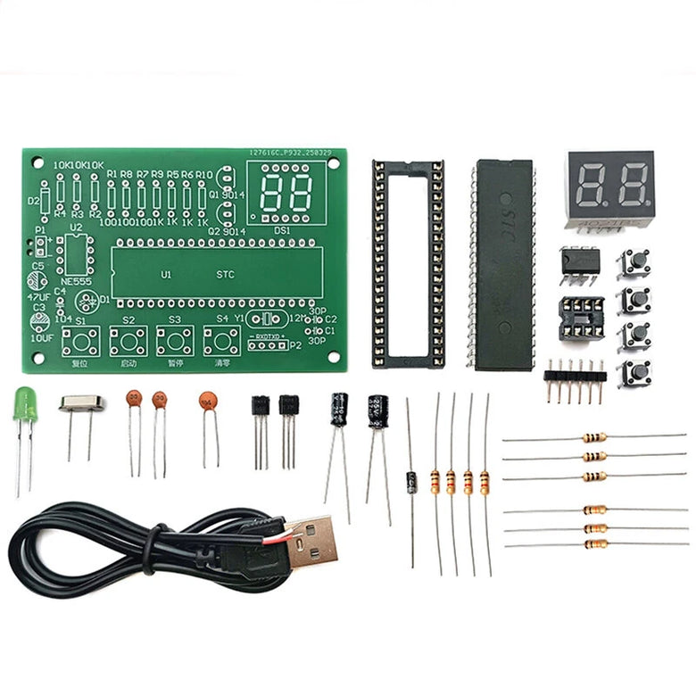 Microcontroller Counter Kit STC90C52 NE555 Timer LED Display 5V-6V DIY Electronics Kit Precision Counting Circuit Complete Components Soldering Practice STEM Learning Educational Project