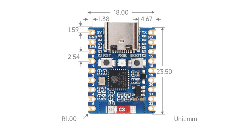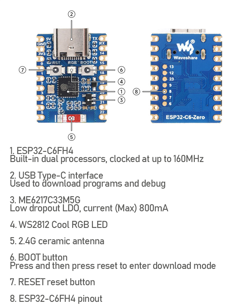 1. ESP32-C6-Zero is a small microcontroller development board equipped with a variety of digital interfaces.