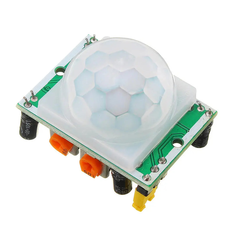 Infrared sensor with control circuit board. The sensitivity and holding time can be adjusted.