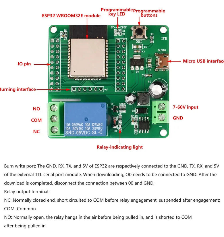 6. Onboard 1 5V relay, output switch signal, suitable for controlling loads with operating voltage below AC 250V/DC30V;